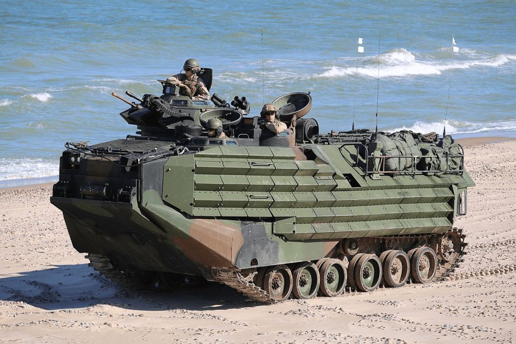 This abomination is what our subject matter was set to replace. In service since 1972, the AAV was the amphibious landing vehicle that the USMC had traded in their Ducks for. The AAV, unlike the early DUKWs, was armoured and, like the DUKWs in general, could swim!