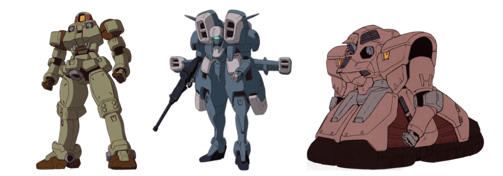 To briefly describe the Aries and the Tragos; the Aries is a long-distance flight-capable Mobile Suit meant to go where the Flight Leo can’t and engage with the likes of fighter jets. While the Tragos is meant to be a heavily armoured Mobile Suit capable of turning into a heavy artillery hover tank, it’s actually kinda useless; as it’s slower than the Basic Leo and its hover mode doesn’t contribute much at all. Also; Gundams don’t give a f*ck about armour.