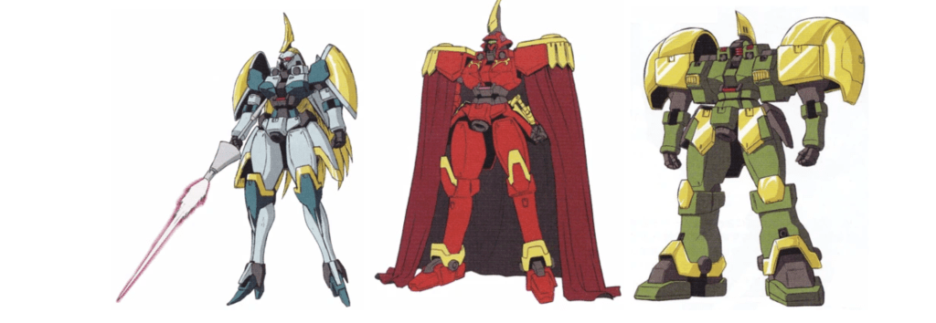 As with Char’s and Johnny’s custom Zakus, the OZ Prize’s special squadron known as Stardust Knights, had their own modifications of the Leo with hints of Aries, Tragos and (maybe) even Tallgeese sprinkled amongst them. Essentially a bunch of aristocratic commandos, the Knights’ Leos are each indicative (for the most part) of the pilots’ appearance and dispositions. To keep it brief…